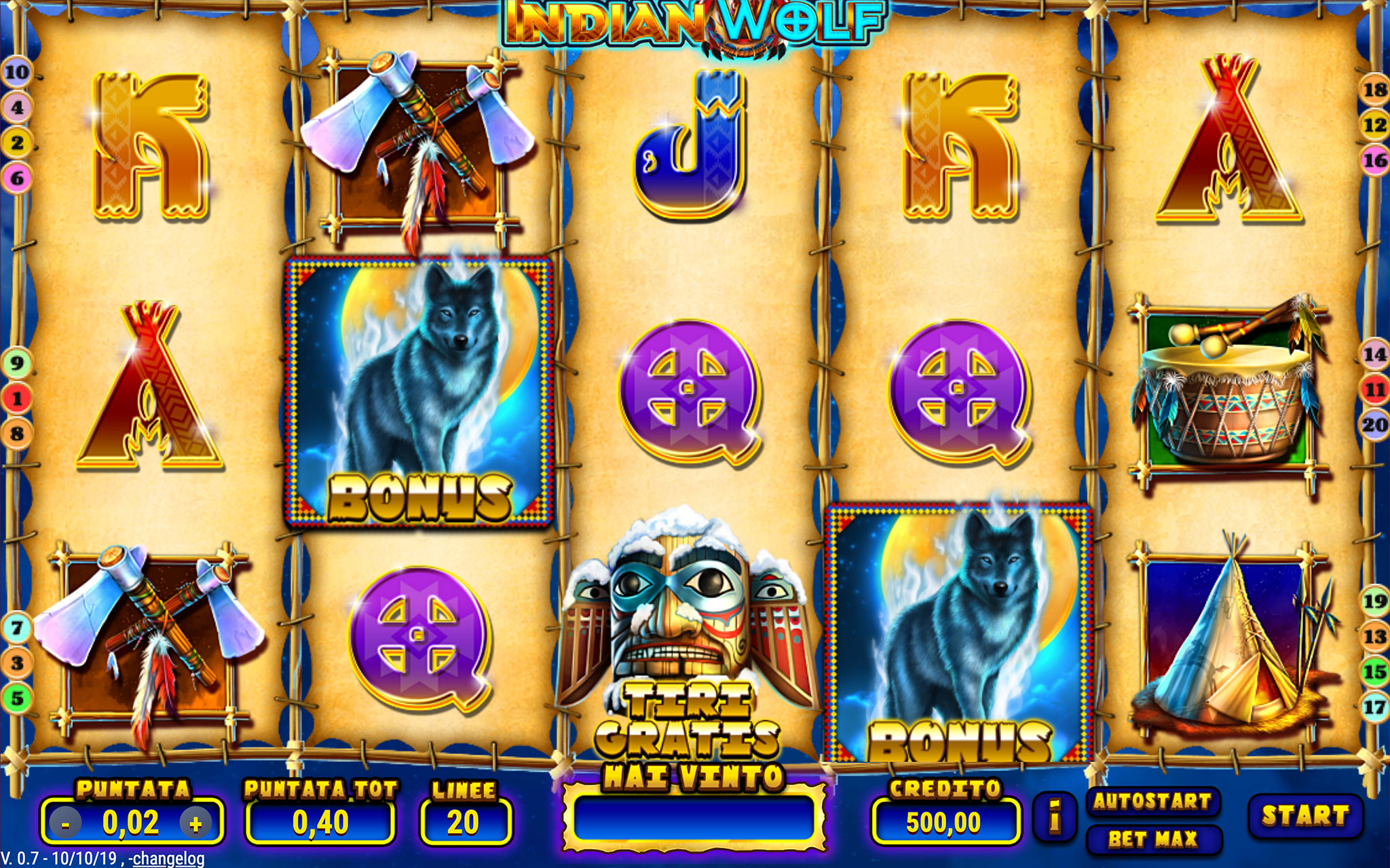 The gameplay featuring 5 reels and 20 paylines gives you the chance to play four special games: the “Free Spins” Bonus, the “Chief” Bonus, the “Dreamcatcher” Bonus and the “Wolf” Bonus, which lets you win up to 1,000 times your total stake.